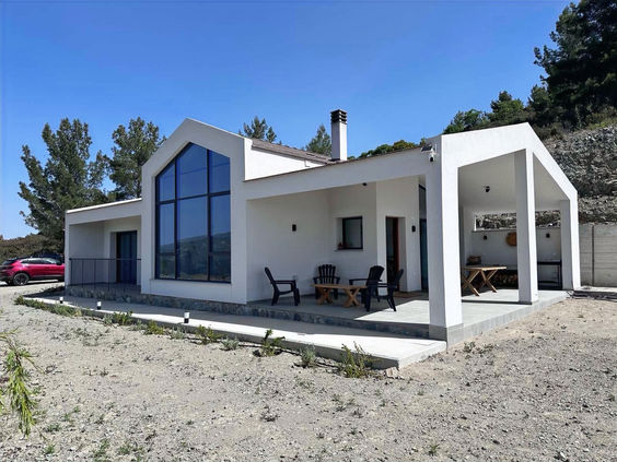 A modern residence located in the mountains of Kyperounda village in Limassol. The scope of the house is a compact, minimalistic, and cozy holiday villa of two-bedroom suites. Having an amazing view of the Troodos mountains this holiday home is developed around a large property, with the design intent of creating two more housing units. The design process aimed to create simple clearly defined spaces and materials to harmonize with the surrounding countryside in an elevated form. All rooms, including the private areas, have views of the mountains and ensure the arrangements of the spaces are practical, simple, and logical.