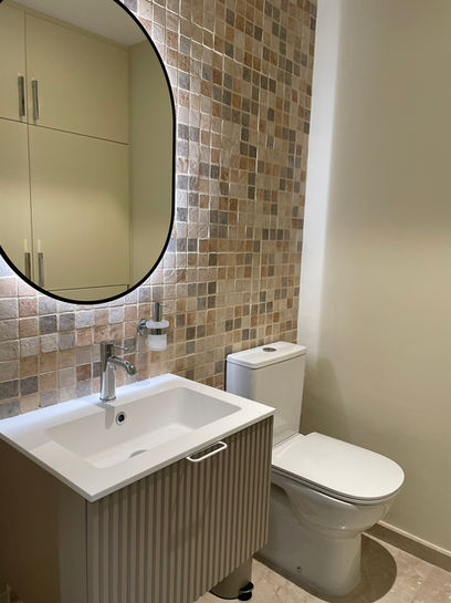 The bathroom serves as a private oasis, boasting modern fixtures and finishes that elevate daily routines. Throughout the renovation, our team managed every detail, ensuring alignment with the client's vision from concept to execution.